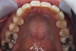 約10か月後の状態です。 歯列不正の改善、咬み合せの改善が完了し顎関節の痛みが和らぎました。 この状態を維持するためにも、現在は定期的な検診を行っています。